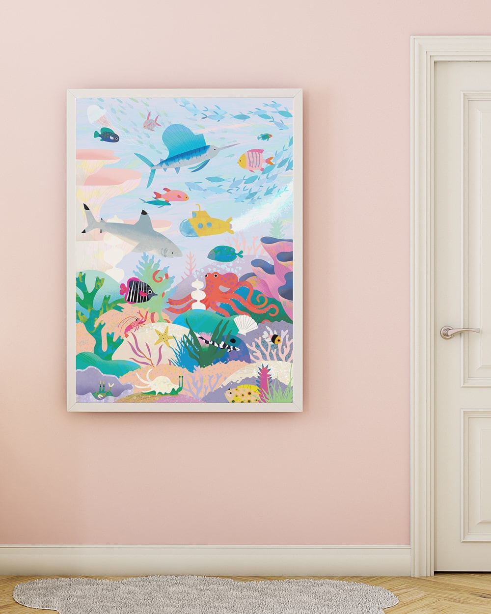 Let's deep dive into the crystal clear waters of this print collection. Explore colourful coral and weird and wonderful creatures. Everything from oversized landscapes to individual animals prints. The perfect choice for those ocean loving kids.